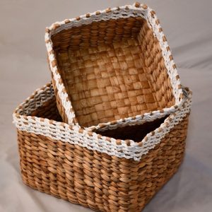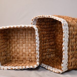 These square storage baskets are made from natural banana leaf as well as white wicker.