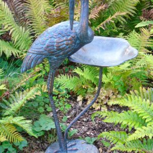 Made from cast iron, this crane feeder bird bath is a stylish addition to gardens of any size. Providing not only a garden ornament but also a bird bath, this feature has proved to be popular within our range of items.
