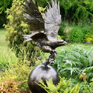 This Eagle on Ball garden statue is a highly creative ornament that would suit a pond or your favourite spot in the garden. The hand finished detail captures the raw spirit in this majestic bird of prey. The large wing span and detailed features can only be adored by anyone who sees it.