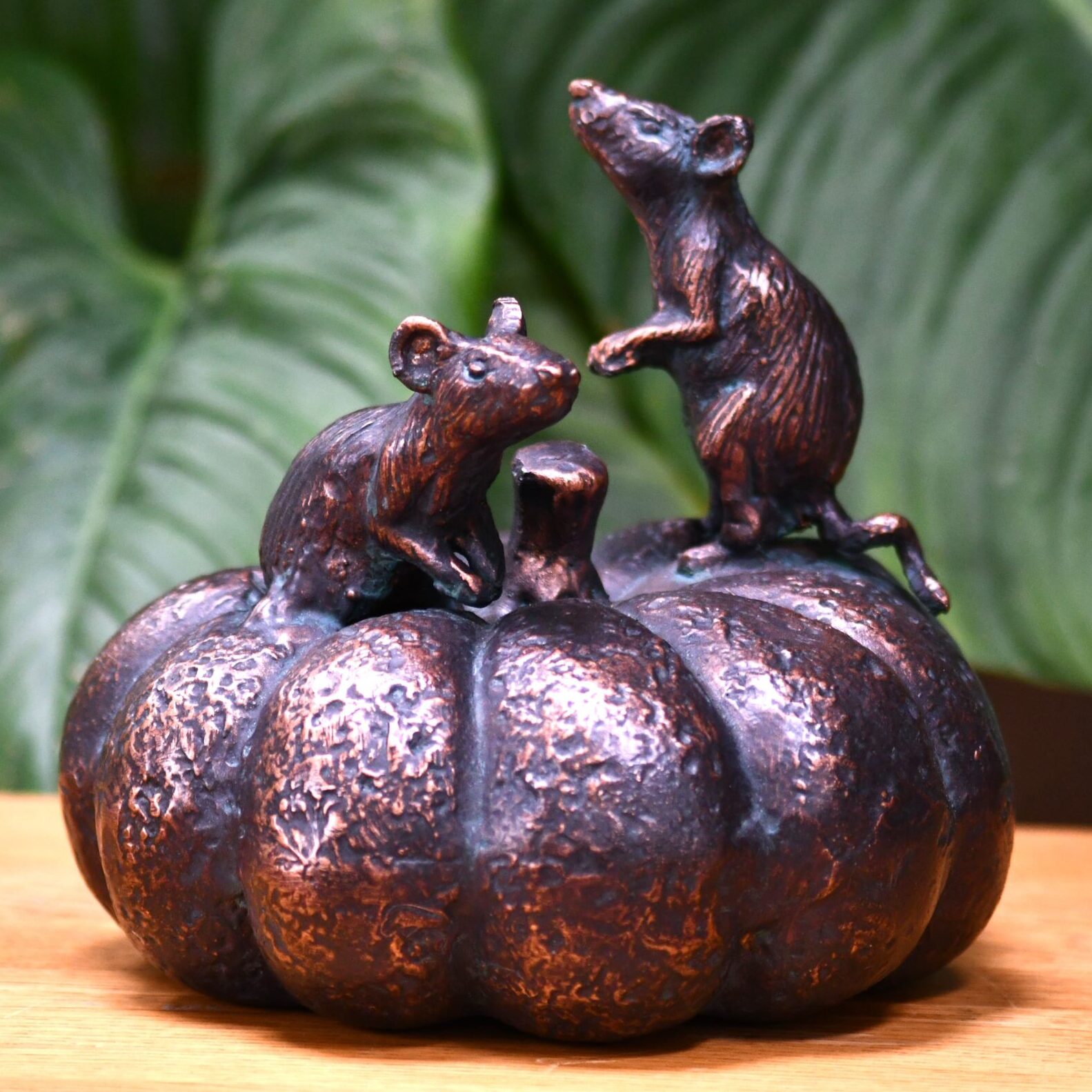 This ornament shows two small mice sitting amongst a pumpkin . Once again, as one of our smaller pieces this item can be placed anywhere and in homes of any size.