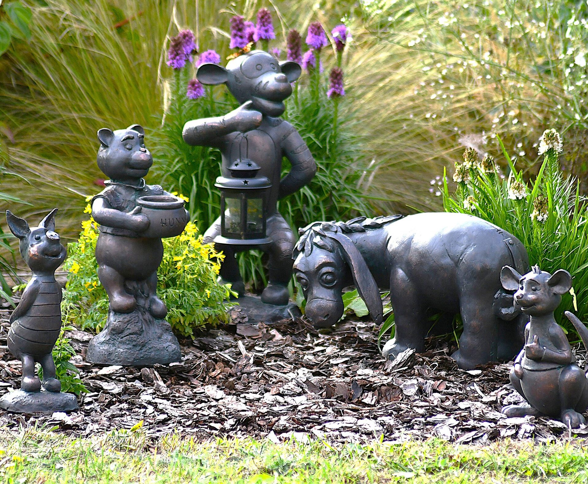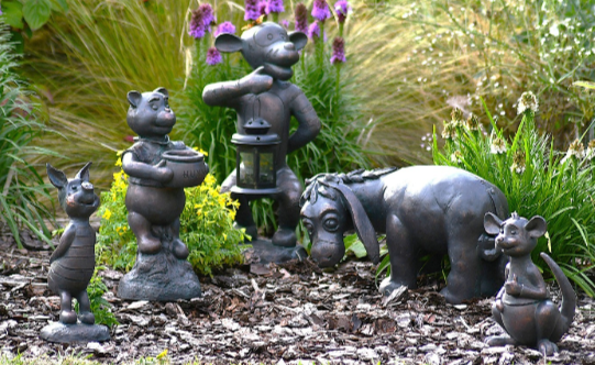 Eeyore (25cm tall) – The melancholic donkey garden ornament brings character to quieter spots in borders or woodland areas.