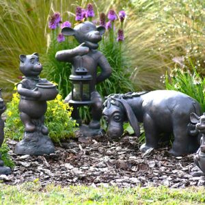 This small Winnie the Pooh garden statue collection works beautifully grouped together or dotted throughout borders, rockeries, and children’s play areas. The aged verde finish gives each character authentic weathered charm that complements cottage garden planting and naturalistic settings.