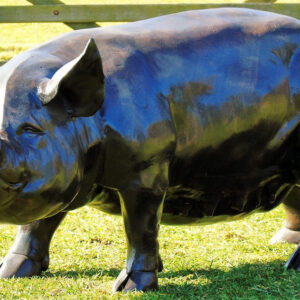 Life size standing pig statue. This guy does not want to be messed with. A bold statement with a little bit of attitude. Hand finished and ready to order, this beauty is something to really stand out in any garden.