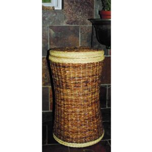 Tall linen bin made from wicker in banana leaf finish. All of our Tall laundry baskets are made in a cylinder shape out of a strong wicker. Each basket is cotten lined and finished off with a handle on the lid to make it easy to remove.