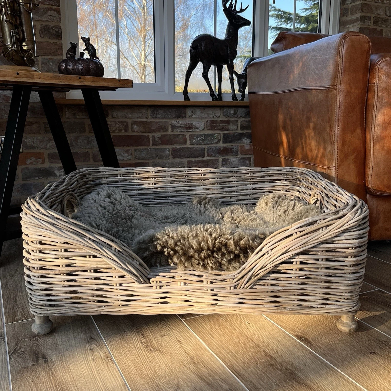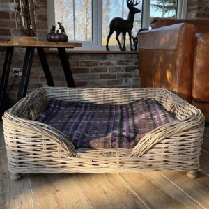 The Layered weave wicker dog bed is a comfy gift for any pet, with handles each end to make it easy to move around. Hand finished and made from natural wicker, finished in a grey kaboo weave, this pet bed is very sturdy and stylish.