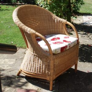 Tub Chair. Made from natural cane / wicker and finished in a candy brown wicker weave.